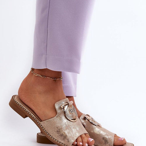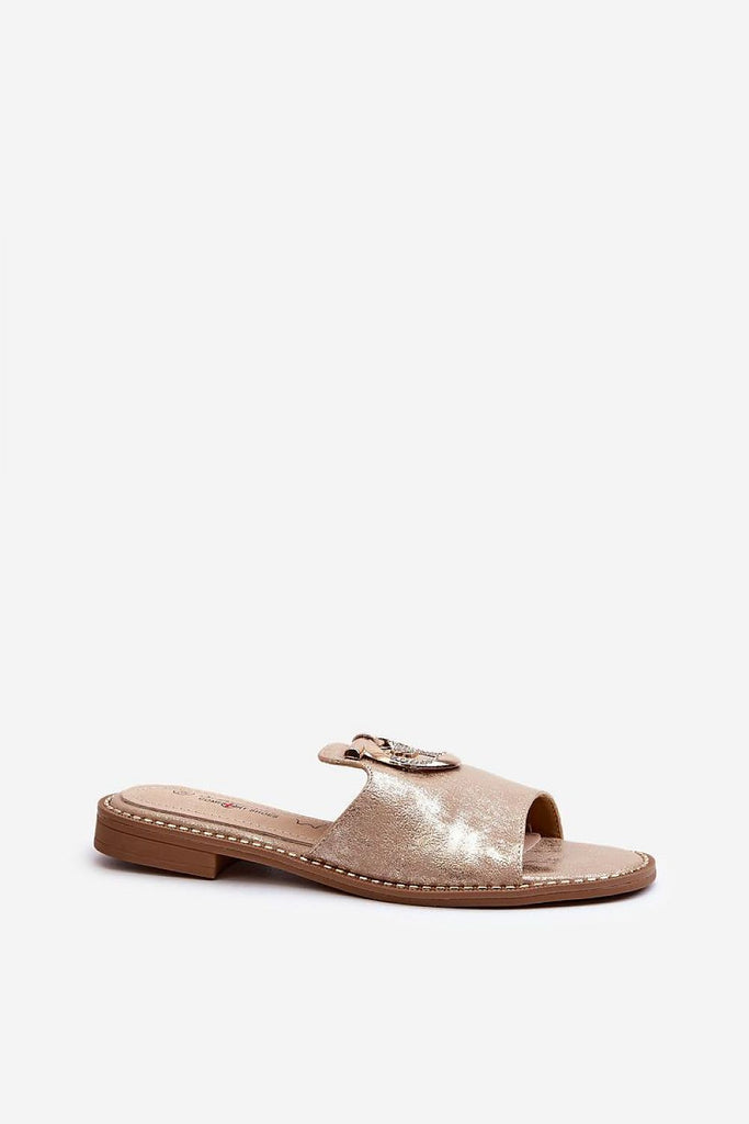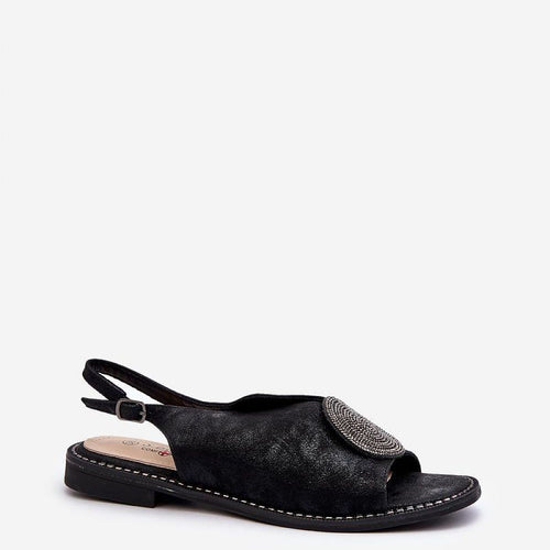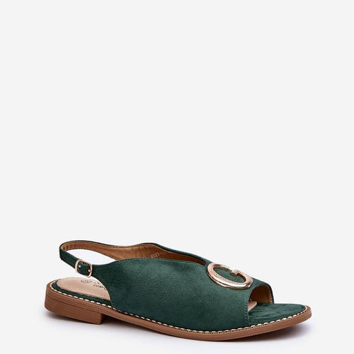 Beautiful women's sandals from the brand S.Barski. Made of high quality eco-suede. The flat heel makes them comfortable even during long wear, and the gold ornament adds to their charm. The adjustable strap with buckle guarantees a perfect fit for every foot, and the soft natural leather insole ensures comfort with every step. This model is sure to be a...
