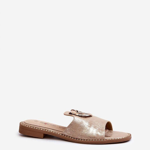 Elegant flip-flops for women by S.Barski are not only stylish, but also extremely comfortable. Set on a flat heel. Shiny with gold decoration. Soft natural leather insole will ensure comfort during use. An ideal choice for many different occasions, they will add a sophisticated charm to your styling. fabric artificial leather Footbed natural leather Heel height 1.5 cm Size Insole...