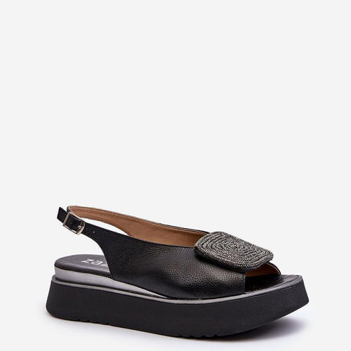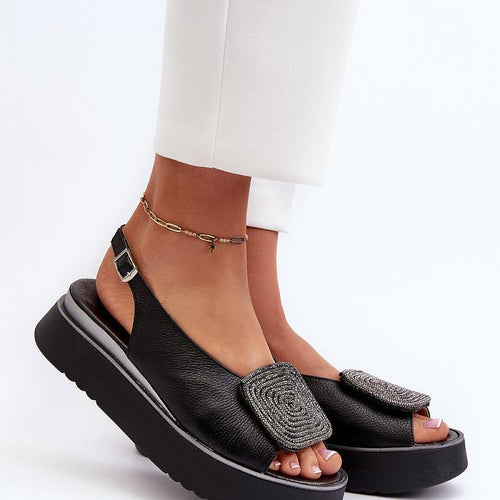 Women's sandals made of natural leather are a combination of classics and comfort. Set on a platform, they provide stability and comfort while wearing. The embellishment on the front adds sparkle, emphasizing their unique look. Fastened with an adjustable strap with a buckle, they guarantee a perfect fit to the foot. These sandals are not only stylish, but also practical...