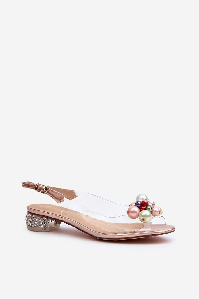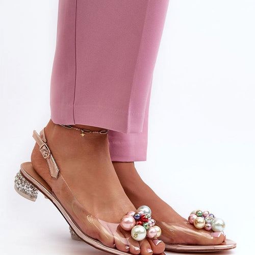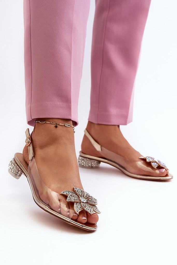 Sandals with transparent upper are a real hit! A low heel decorated with zircons adds a unique sparkle to them. Fastened with an adjustable strap with a buckle, they guarantee stability and wearing comfort. The soft natural leather insole ensures comfort even during long outings. Additional charm is added by the ornamentation on the front. Perfect for special occasions and...