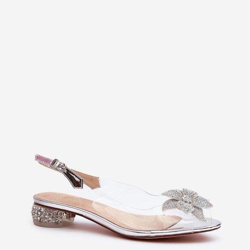Stylish sandals with transparent upper are a real hit! Set on a low heel decorated with zircons. Fastened with an adjustable strap with a buckle. The insole made of natural leather is soft and comfortable. Decorative flower on the front. Perfect for various celebrations and evening outings! fabric ~tworzywo sztucznee Footbed natural leather Heel height 3 cm Size Insole lenght...