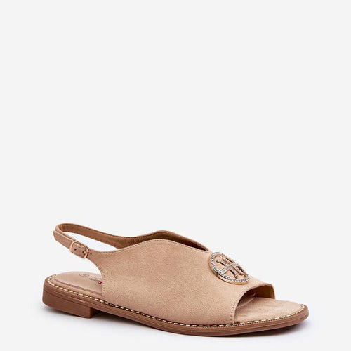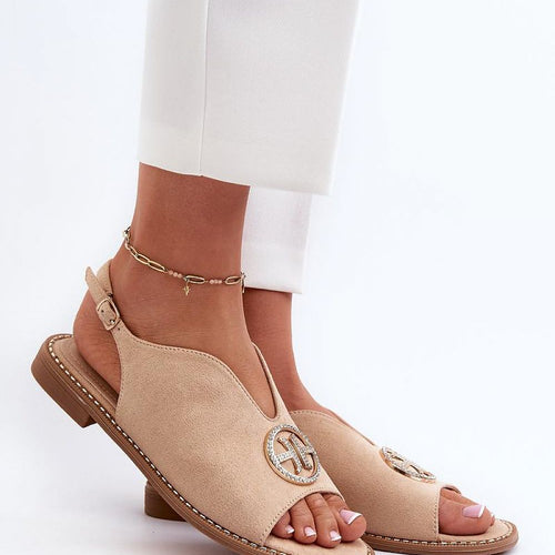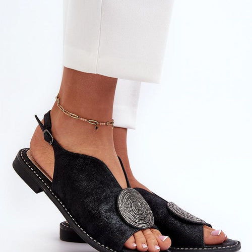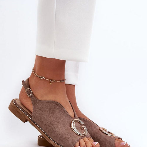 Elegant women's sandals by S.Barski. Made of eco-suede. Set on a flat heel. Gold ornamentation on the front. Fastening with an adjustable strap with a buckle guarantees a perfect fit to the foot. Soft natural leather insole will provide comfort with every step. This model will certainly complement many stylings! fabric imitation leather suede Footbed natural leather Heel height 1.5...