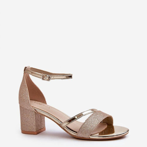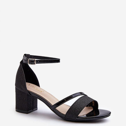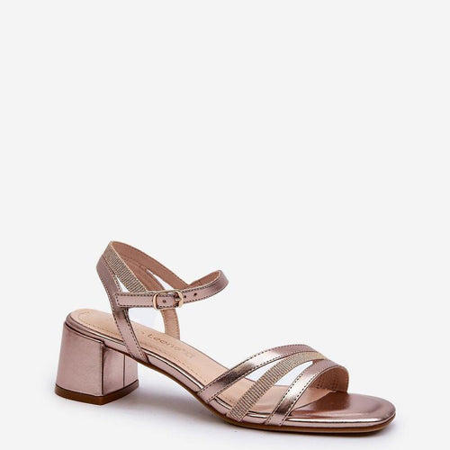 Charming women's eco leather sandals will be the perfect choice for various celebrations. In the front three connected straps. The heel in the form of a low block provides stability and comfort while wearing. Fastened with an adjustable strap with a buckle, they guarantee a proper fit. fabric artificial leather Footbed natural leather Heel height 5 cm Size Insole lenght...