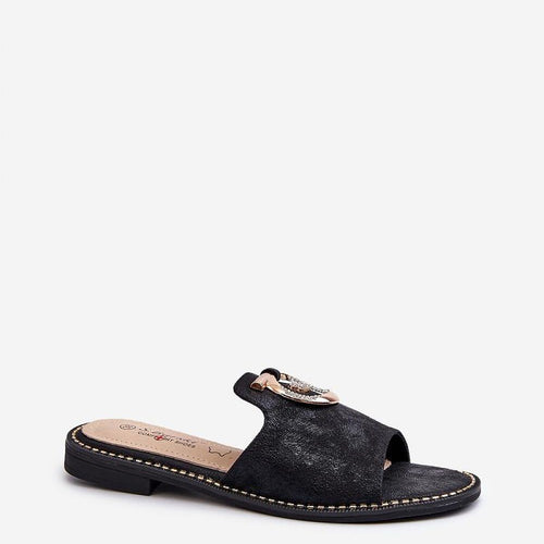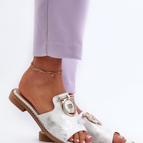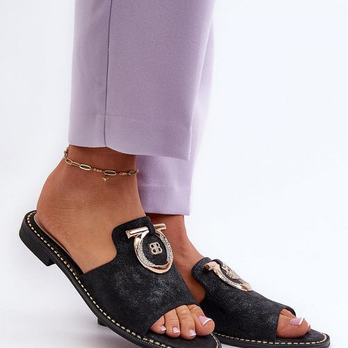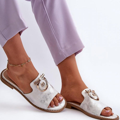 Elegant flip-flops for women by S.Barski are not only stylish, but also extremely comfortable. Set on a flat heel. Shiny with gold decoration. Soft natural leather insole will ensure comfort during use. An ideal choice for many different occasions, they will add a sophisticated charm to your styling. fabric artificial leather Footbed natural leather Heel height 1.5 cm Size Insole...