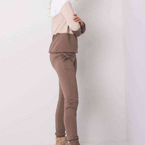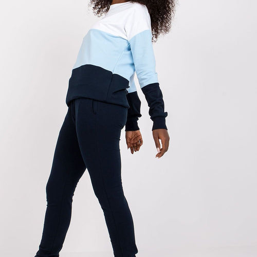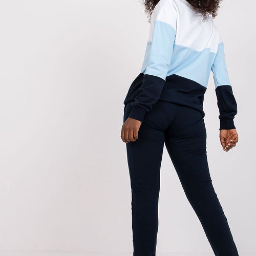 A sweatshirt set consisting of a sweatshirt and pants. Sweatshirt with long sleeves and round neckline. The sweatshirt is made of fabric in three colors. Long pants with elastic waistband, tie ties and slip pockets. Cotton 90 % Spandex 10 % Size Lenght Chest Waist S 64/101 cm 110 cm 64 cm