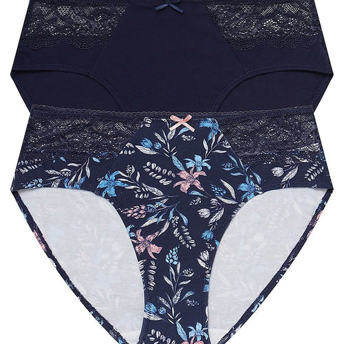 Timeless HALLY panties are classic cotton panties packaged in convenient two-packs. Soft cotton provides proper thermoregulation, and the addition of elastane makes the panties perfectly adapt to the shape of a woman's body. Elegant lace inserts create a decorative finish on the hips. Cotton 95 % Spandex 5 % Size Hips width L 100-104 cm M 96-100 cm S 92-96...