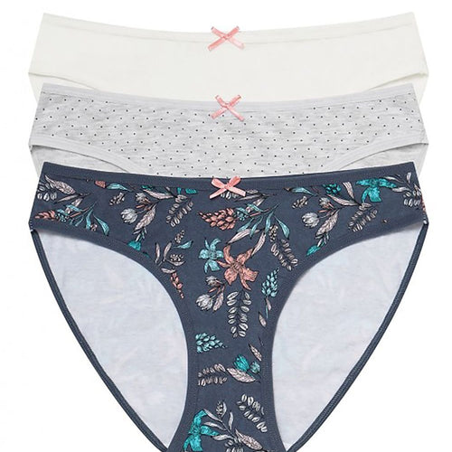 Women's panties with a timeless cut of the panties type, made of soft, airy cotton, are an excellent choice for female admirers of comfort. MI-MI panties are available in a dozen color versions of sets packaged in economical three-packs. Flat, comfortable seams are almost invisible under everyday clothes. Cotton 95 % Spandex 5 % Size Hips width L 100-104 cm...