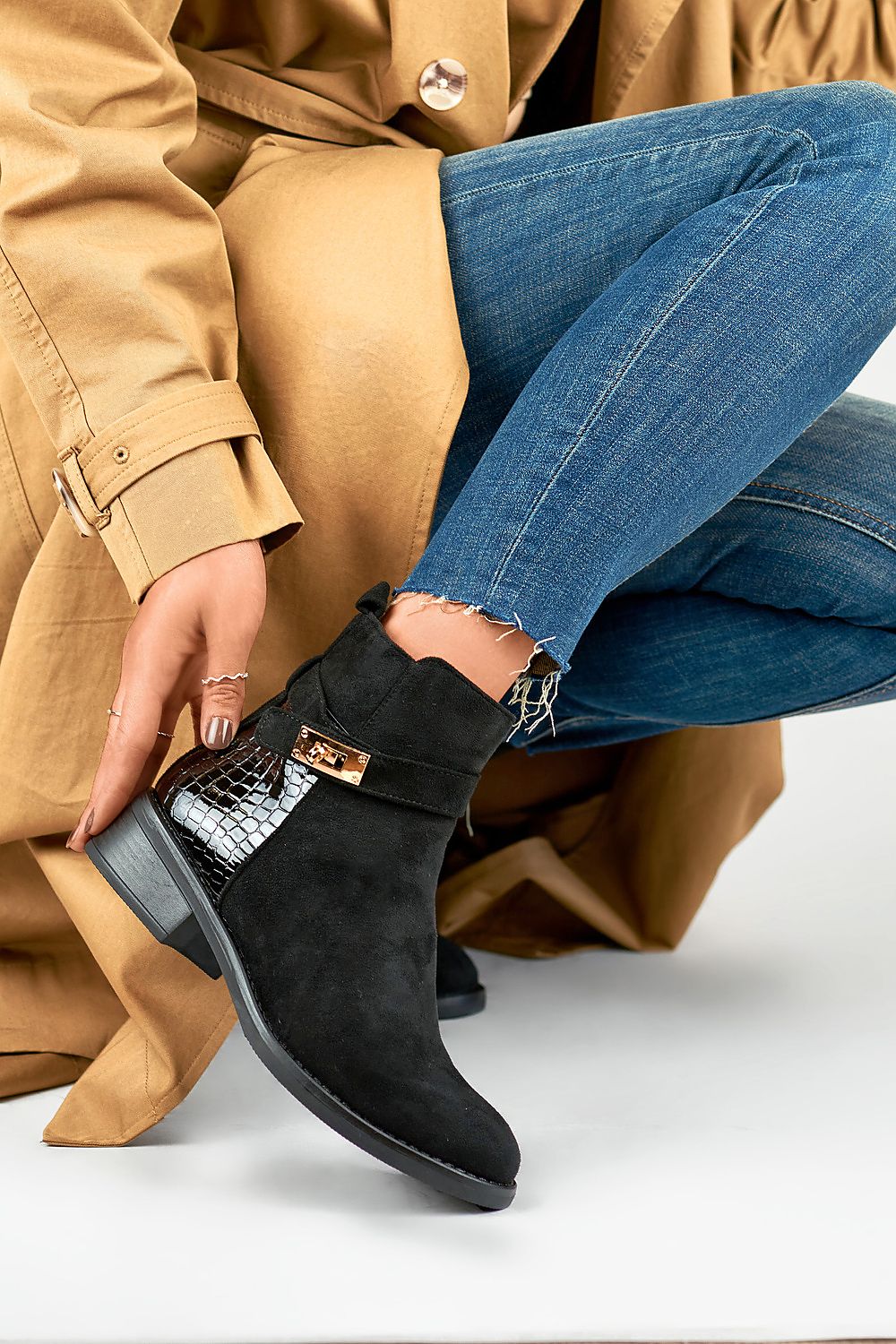 These stylish boots are the perfect choice for the cooler days of autumn and winter. Their upper is made of durable eco-suede, which gives them an elegant look. In addition, the upper is trimmed with eco-friendly patent leather, which adds a unique touch to the boots. The interior of the boots is lined with soft eco fur, which provides warmth and comfort when worn on colder days. Despite the low heel of 3.5 cm, these boots are stable and are perfect for longer walks or shopping. The boots have a practical zipper on the inside of the upper, which makes them easy to put on and take off. The round toe of the boot provides comfort and freedom of movement. These boots are the perfect combination of style and comfort that will allow you to look fashionable and feel comfortable in the autumn-winter season.