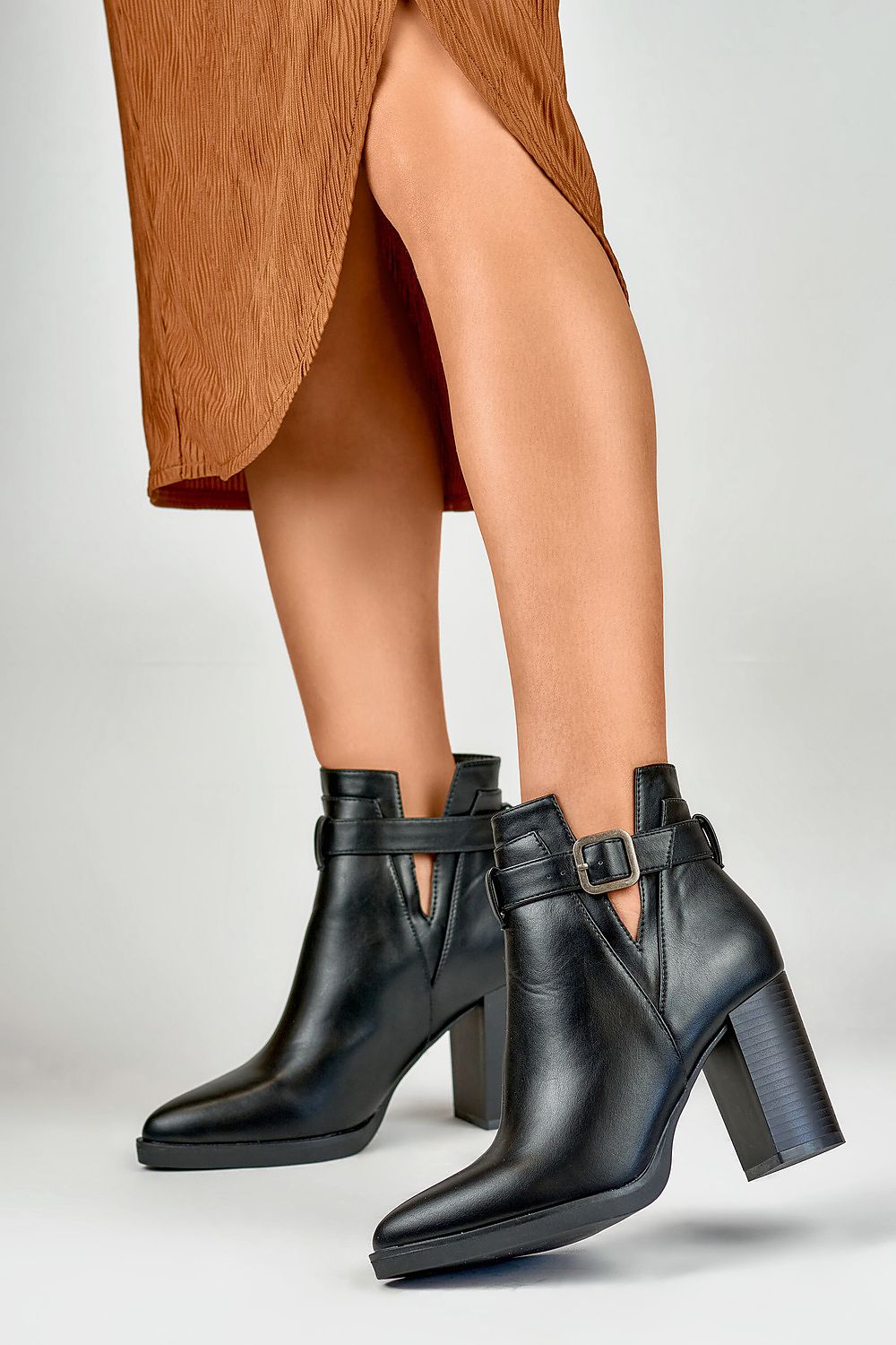 These boots for the fall/winter season are a statement of elegance and style. Their upper is made of durable and easy-care eco-leather, which makes them an excellent choice for colder days. The boots have a comfortable 8.5 cm high heel, which adds an elegant touch to the silhouette, while providing comfort. The type of heel is a post, which adds stability and confidence to the boots with a step. The height of the upper is 11 cm, which allows for diverse styling, you can wear them with pants, as well as dresses or skirts. The boots are slip-on, which makes them easy to put on and take off. The interior of the boots is padded with a soft textile insole, which ensures comfort while wearing them. The pointed toe gives the boots a fashionable and elegant touch. These boots are the perfect addition to your autumn and winter closet, adding a chic and classy touch.