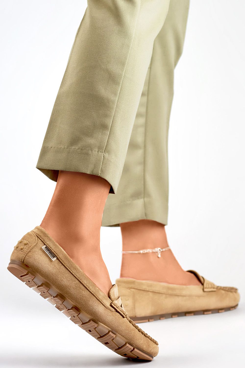 Beige colored moccasins are a combination of comfort and style, created for modern women who appreciate casual luxury. The upper made of high-quality eco leather gives the shoes an elegant look, while taking care of the environment. Designed for women, these beige moccasins are ideal for warm spring and summer days, but their versatile design means they can be worn all year round, adding subtlety to a variety of outfits. The ecological leather insole provides comfort during wear, while adapting to the shape of the foot. These moccasins feature a round nose, which adds a classic touch and makes them easy to match with a variety of clothing. Their slip-on design makes them easy to put on, making them a practical choice for everyday wear. Beige moccasins are not only a comfortable shoe, but also a subtle closet piece, perfectly suited to an everyday, lightweight lifestyle.