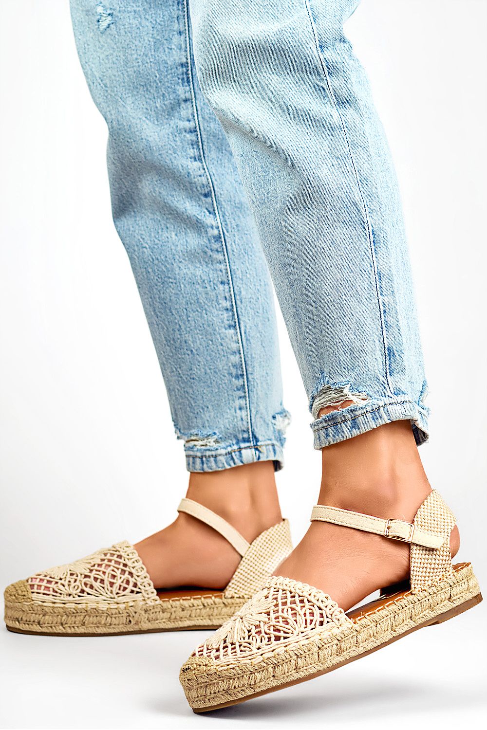 These trendy women's sandals made of high-quality textile material are a perfect choice for spring and summer days. The lightweight and breathable material provides comfort even during the hottest days, while adding a stylish look to the sandals. The textile insole is soft and friendly to the foot, ensuring comfort throughout the day. These sandals have a 3 cm platform that not only adds a subtle height but also provides additional cushioning and comfort while walking. The buckle closure allows for easy on and off, as well as allows for a customized fit to individual needs, providing perfect foot grip. The round toe gives the shoes a classic look that works well in both casual and more formal occasions. These sandals are a combination of style, comfort, and functionality, perfect for women who value a fashionable look and comfort in one.