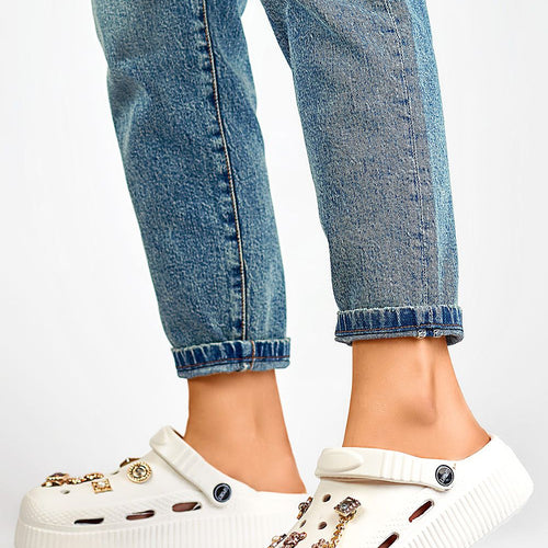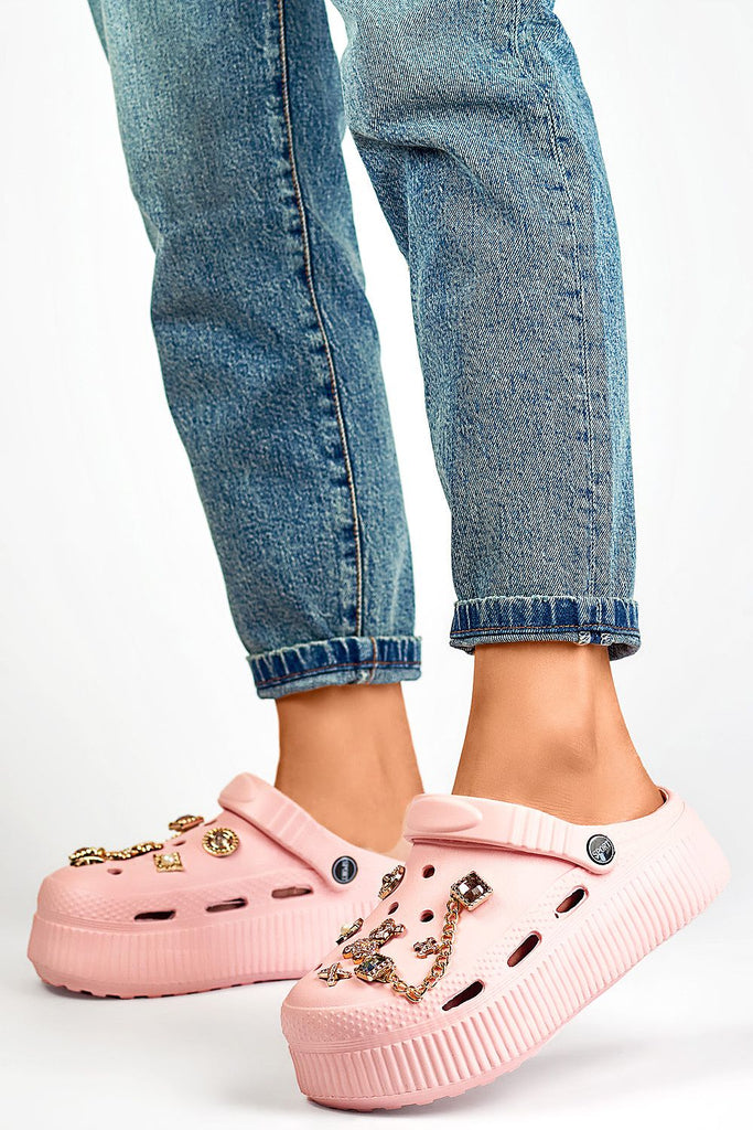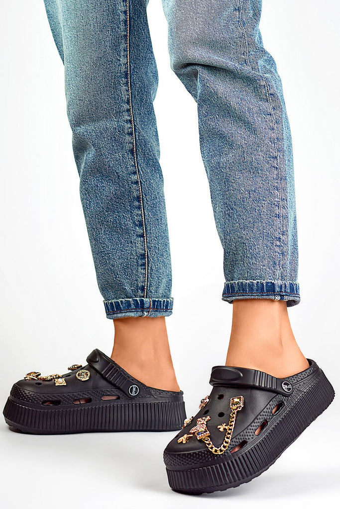 Black women's flip-flops made of high-quality plastic are an excellent choice for spring and summer, as well as for year-round wear. The insole is also made of plastic, providing comfort for everyday wear. The shoes have a round toe and a slip-on style, making it easy to quickly put on and take off. With a 4-centimeter platform, the flip-flops provide...