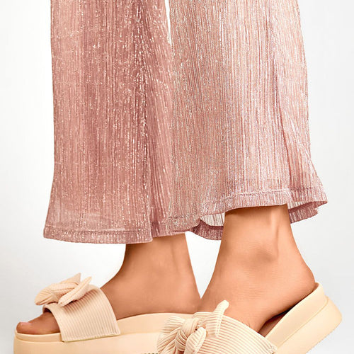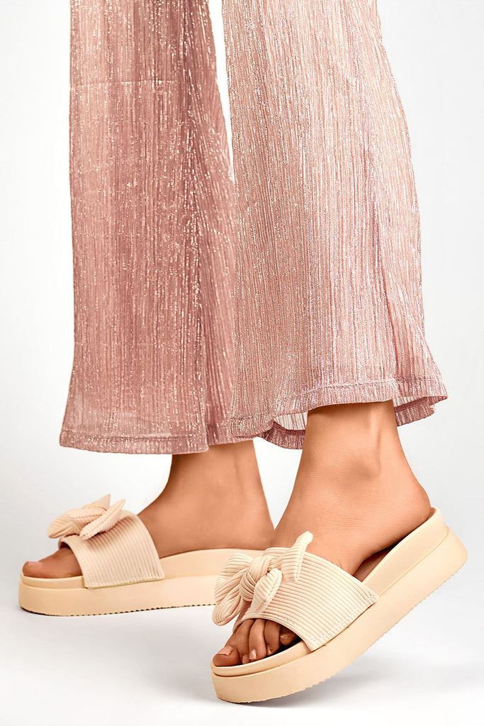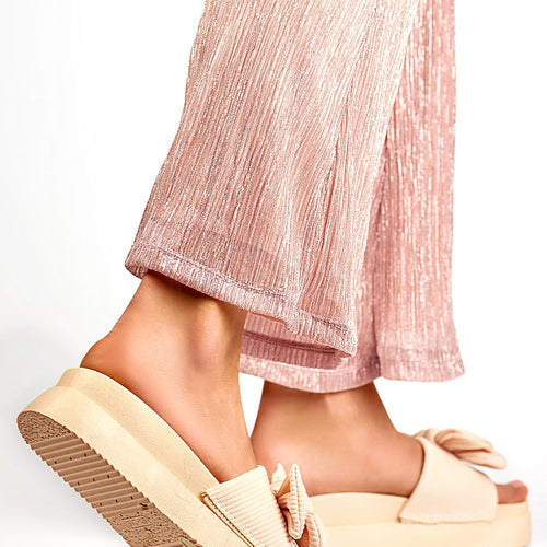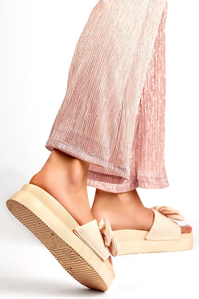 Beige textile women's flip-flops are an ideal choice for spring, summer, and year-round wear. The insole made of plastic provides comfort for everyday wear. The flip-flops have an open nose, which gives a light and airy feeling. The slip-on cut makes it easy to quickly put on and take off. With a 4.5 centimeter platform, the flip-flops provide a gentle...