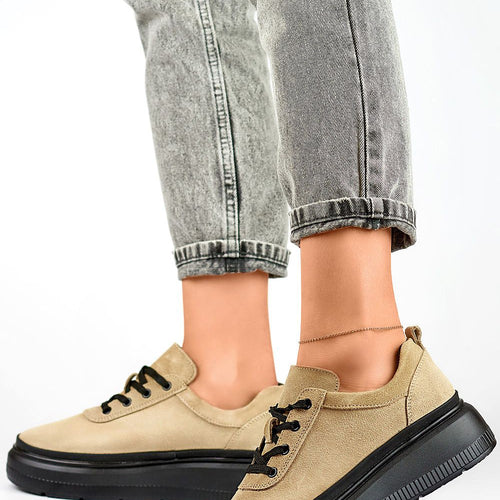Beige women's sports shoes made of natural leather are a luxurious and functional choice for any season, especially for spring and summer. The natural leather insole provides maximum comfort and breathability, ideal for everyday activities. The lace-up closure allows for a perfect fit on the foot, while the round toe adds a classic style. With a 5cm platform, these shoes...