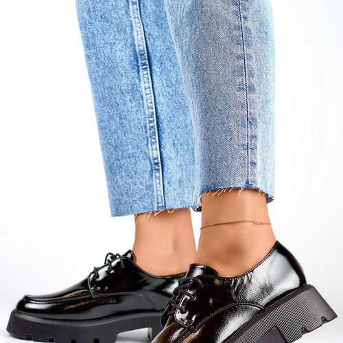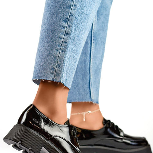 Semi-boots in a deep, elegant shade of black are a combination of style and functionality, dedicated to modern women who want to emphasize their femininity in every step. The upper made of patent leather gives the shoes a unique shine, making them not only a fashionable styling element, but also an elegant addition to a variety of outfits. Created with...