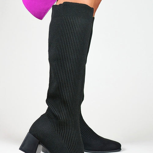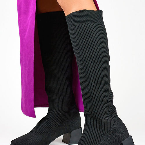 Black boots with elastic sock upper are the perfect combination of style and functionality that will make every step a pleasure. The flexible upper made of high-quality textile material not only provides a perfect fit to the leg, but also looks extremely stylish. The boots reach an impressive height of 39cm, which not only gives them an elegant character, but...