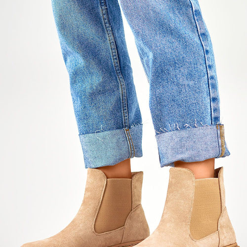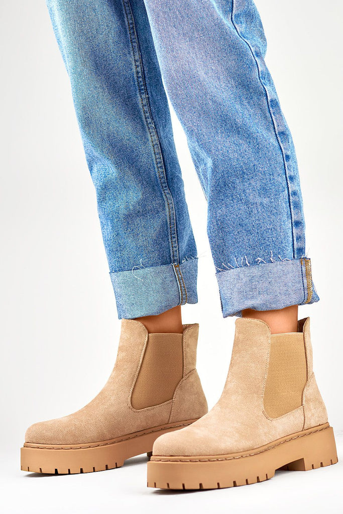 These stylish beige-colored slippers are the perfect choice for the fall/winter season. Made of eco-suede, they feature an elegant and versatile design. The 13 cm high upper gives them a fashionable and feminine character. The interior of the slippers is lined with soft shoe blanket, which guarantees warmth and comfortable wearing, especially on colder days. The shoes have a round...