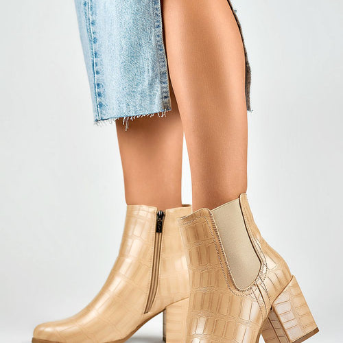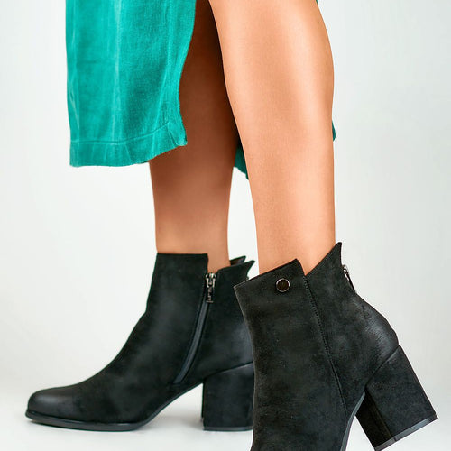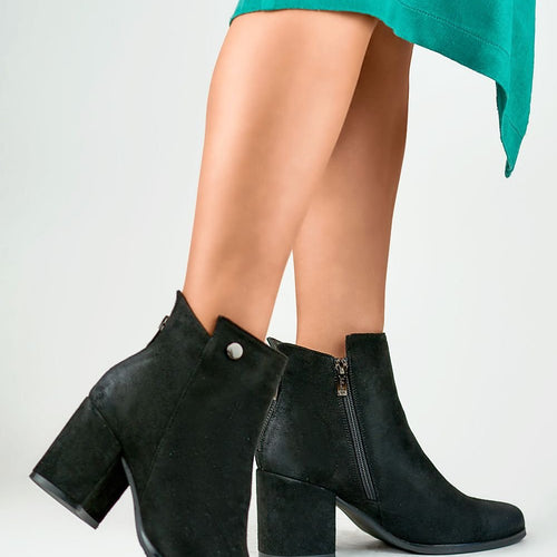 Beautiful women's boots were made of eco-suede. Adorned with a zipper on the back and an emblem on the side of the upper. Set on a heel in the form of a post. Model with an almond toe. The boots have been insulated with fur. Fastened with a zipper. A great model for colder days. fabric imitation leather suede warmers...