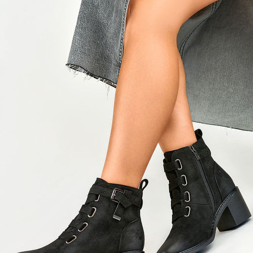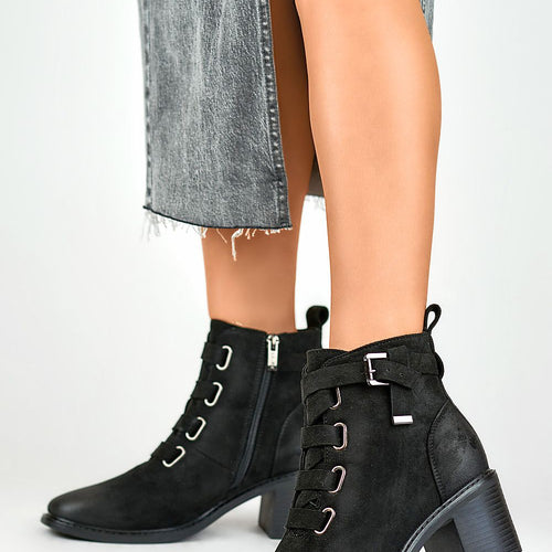 Classic women's boots made of eco-suede. They have a decorative strap on the upper. Fastened on the side with a zipper. The boots are set on a heel in the form of a post. The nose is shaped like an almond. This model will keep you warm on colder days, thanks to the warming. These boots should be in your...