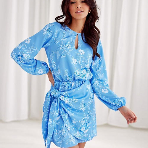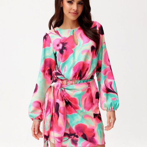 The mini dress with binding on the side and a teardrop at the neckline is made of beautiful patterned fabric that is very comfortable to wear. The dress features a tie at the waist, which adds to its charm. It also has a phenomenal teardrop-shaped neckline and long sleeves finished with an elastic band, which will come in handy during...