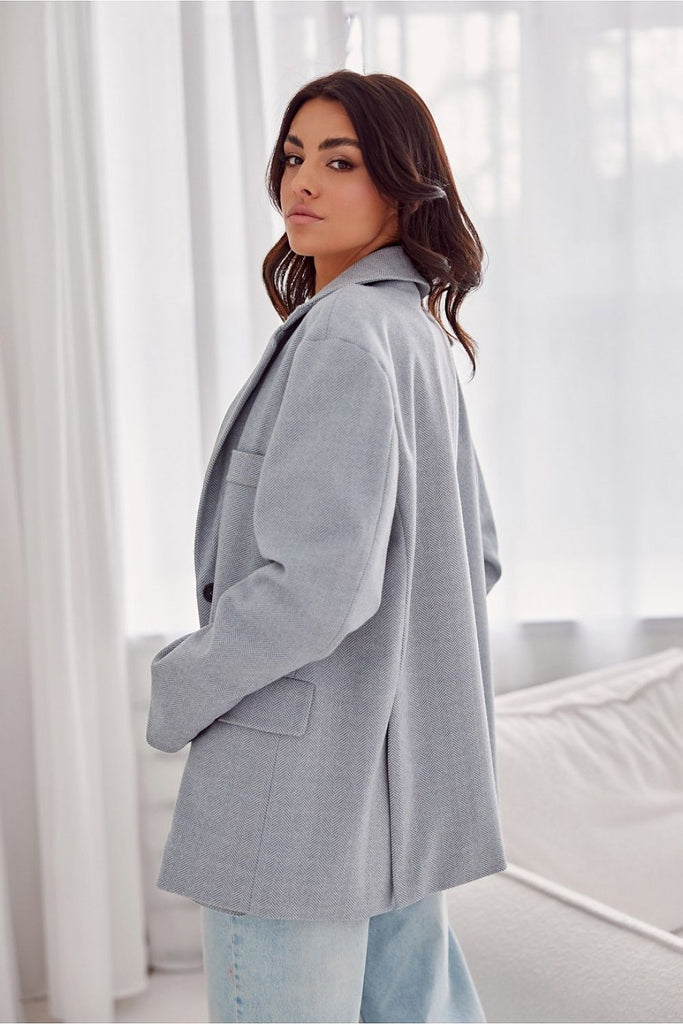 Arya jacket is a classic model with a standard length and oversize cut. It was made of decent material in a unique herringbone pattern, which guarantees warmth on colder days and a stylish look regardless of the occasion. The classic collar and long sleeves decorated at the end with three buttons emphasize the elegant character of the jacket. Arya has...