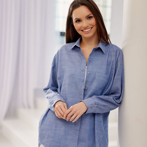 The Leyla long shirt is made of pleasant material in shades of denim. Its looser oversize cut makes it not only fashionable, but also very comfortable to wear. The shirt has a slightly extended back trim, which adds extra finesse. A classic collar and long sleeves finished with buttoned cuffs add an elegant touch to the shirt. An additional decorative...