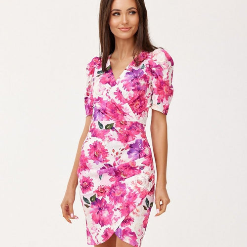 Mini dress with envelope neckline and short sleeves is made of very good quality fabric that will be comfortable to wear. The short dress is characterized by short ruffled sleeves and creases along the torso. The dress is also distinguished by its envelope neckline and overlapping bottom. It also features beautiful patterns that will appeal to everyone. The pre-knee length...