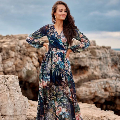 A fashionable dress that has a great cut and maxi length. A dress that you can confidently wear all year round. Very pleasant, airy and delicate to the touch material, it will work well for all kinds of figures. The dress is characterized by a safe maxi length and has a beautiful flowing cut, on which we placed a patterned...