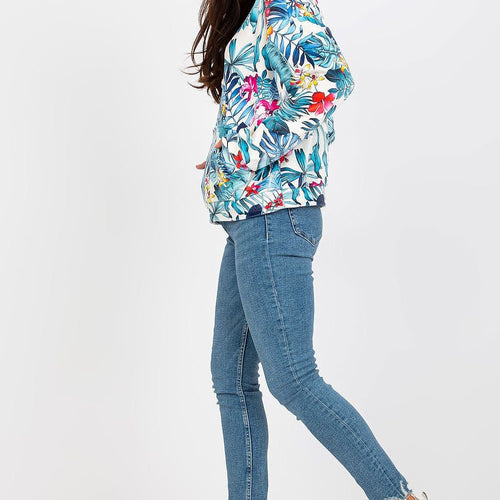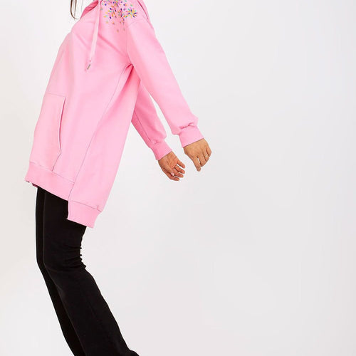 Women's long-sleeved, zippered sweatshirt. Sweatshirt with a hood, a pocket on the front. On the shoulders interesting embroidery. Spandex 10 % Viscose 90 % Size Chest L/XL 91-96 cm S/M 82-86 cm