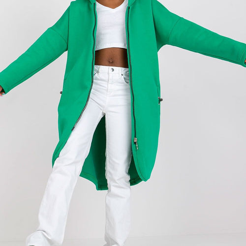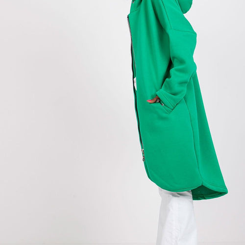 Sweatshirt with an extended cut, zippered. Sweatshirt with long sleeves and a hood. Slip-in pockets on the sides. Cotton 90 % Spandex 10 % Size Chest L/XL 91-96 cm S/M 82-86 cm