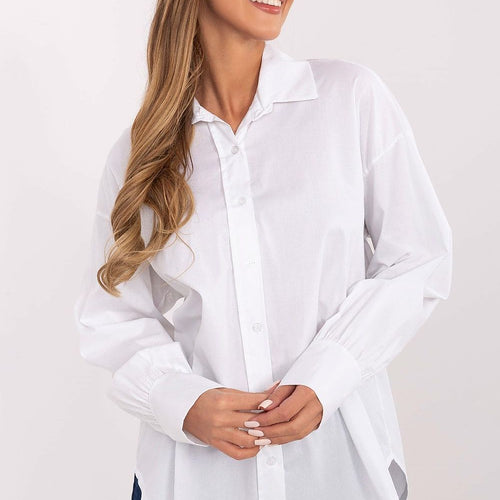 The elegant oversized women's shirt is a stylish proposition for many occasions, perfect for everyday wear, work, formal meetings, or parties. Made of high-quality cotton with a touch of elastane, it ensures comfort and freedom of movement. The longer model with a classic collar and button closure combines timeless elegance with modern design. The long sleeve adds chic, and the...