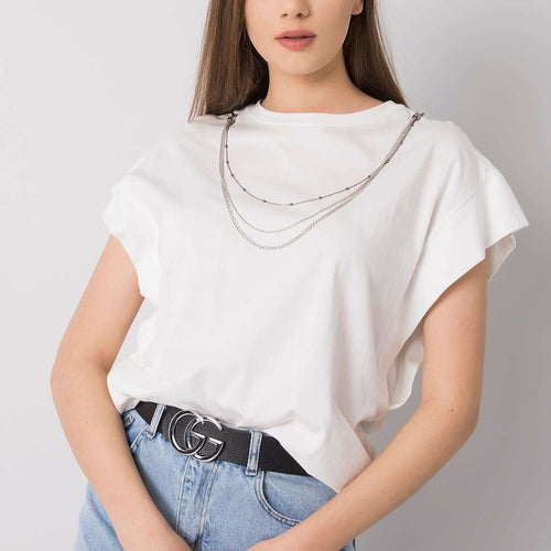 Blouse of loose fit, with short sleeves. Comes with a detachable chain. Cotton 100 % Size Chest L 90-93 cm M 86-89 cm S 82-85 cm