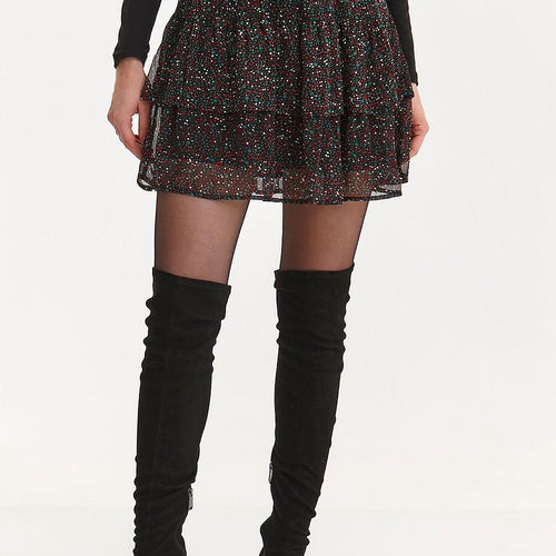 A light and airy mid-thigh length women's skirt with a wide and practical elastic waistband. It has a magnificent ruffle at its bottom and is flared and delicately pleated, while an interesting print on the whole with a motif of colorful flowers adds to its charm. The dress is made of delicate and pleasant-to-touch knitwear, which makes it a perfect...