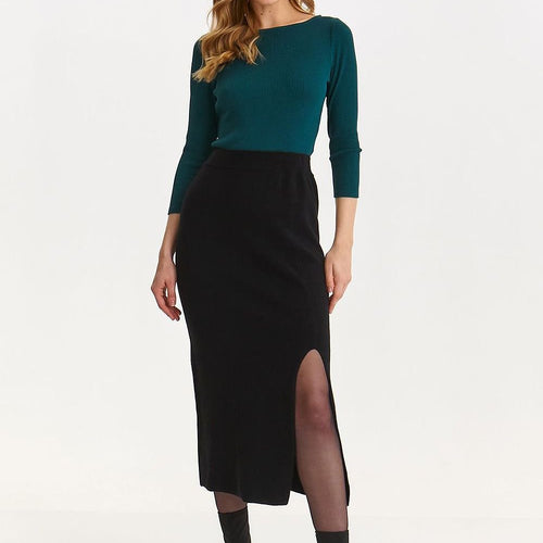 Captivating with its unique cut, this trapeze skirt for women features an extremely impressive envelope front, enriched with a decorative gold button at the top. It was made of pleasant to the touch and good quality knitwear, being a great complement to both feminine styling with an elegant blouse, as well as a slightly sporty one with a T-shirt. It...