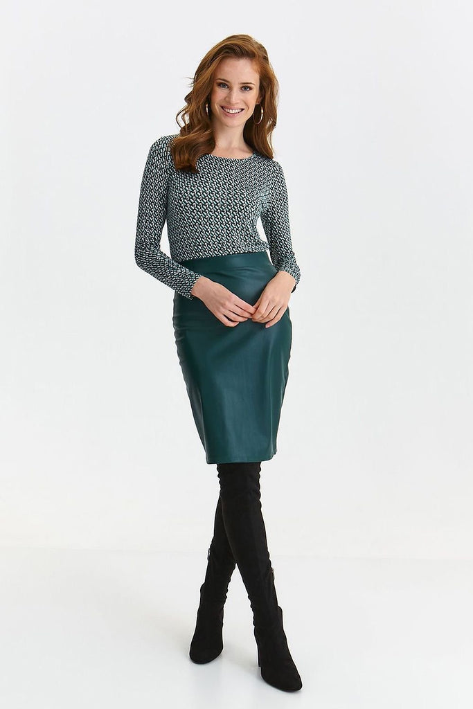 This green skirt is the quintessence of elegance and style. Made of eco-leather, it not only looks fashionable, but also takes care of the environment. Its pencil cut emphasizes the feminine silhouette, while giving a professional touch. At the back there is a subtle opening, adding subtlety and originality to the skirt. These details make the skirt extremely feminine, ideal...