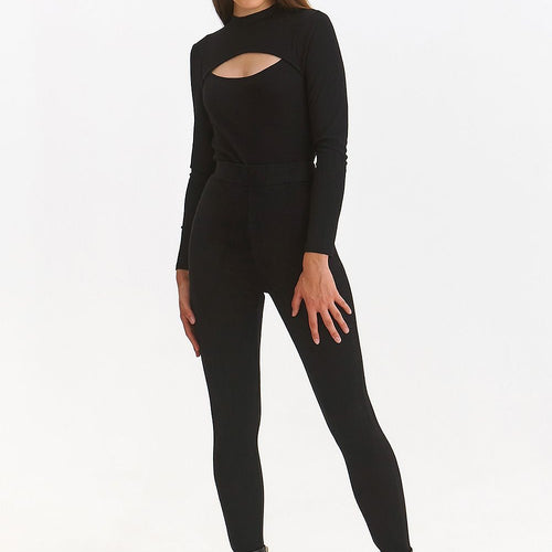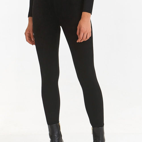 These black leggings are the perfect piece of clothing for any woman. Made of soft knit fabric, the elastic waistband ensures a comfortable fit. They are the perfect choice for physical activity or a casual look. The classic black color makes them match virtually any outfit. Spandex 3 % Polyester 97 % Size Hips width Waist width 34 72 cm...
