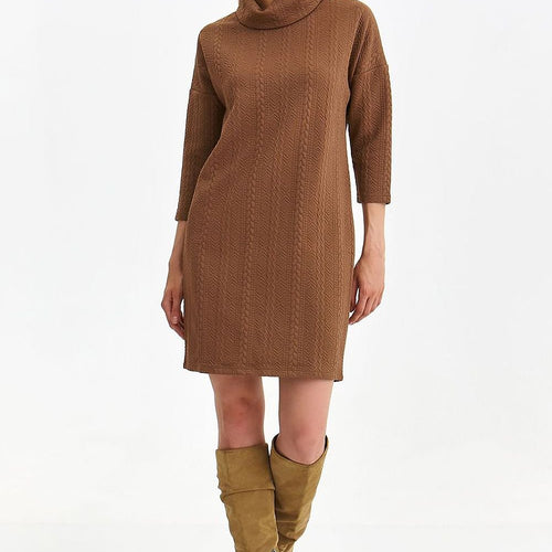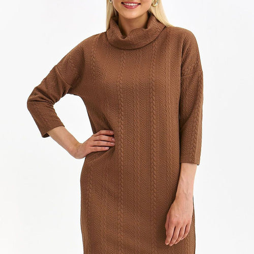 Incredibly charming and overflowing with comfort during use, this simple oversize women's dress has a mid-thigh length. It has straight 3/4 length sleeves and a very impressive turtleneck with a loose cut at the top. Patterns and delicate stitching throughout and a full casual style add to its charm. It will be perfect for various casual outfits, being appreciated for...