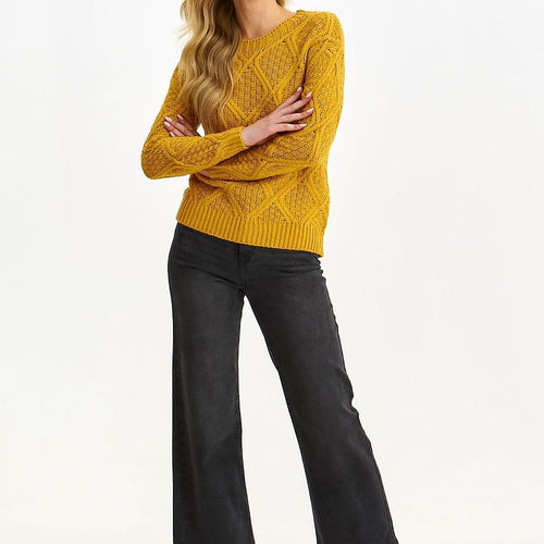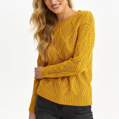 Captivating in comfort during use, this women's sweater has a very loose fit with straight long sleeves ending in a ribbed hem. It has an eye-catching round neckline with piping around it, and there is an impressive openwork pattern with delicate interlacing. It was made of pleasant to the touch and good quality acrylic fabric, and will be a great...