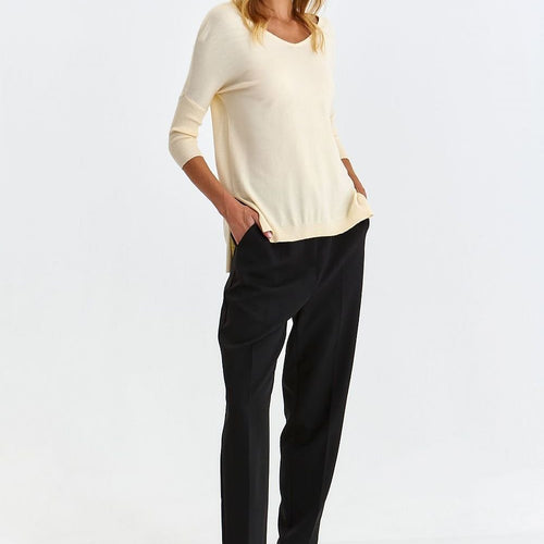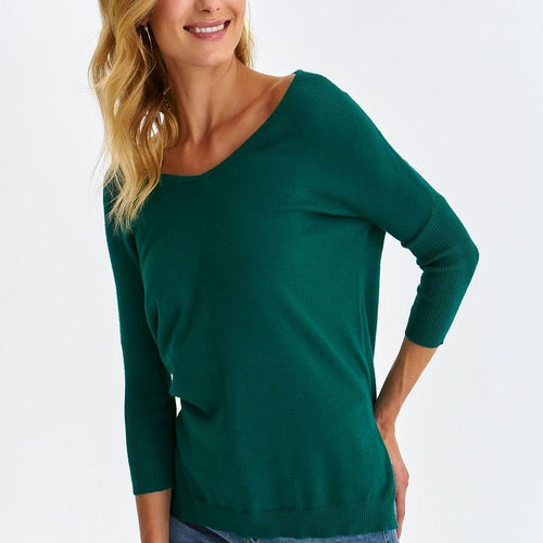 Valued for its versatility of use, this classic women's sweater has a straight cut with 3/4 length sleeves finished with delicate stitching. It is made of pleasant to the touch and durable knitwear and enriched with a slightly oval neckline with delicate piping around it, and goes well with both a striking mini skirt and classic long jeans pants. Irreplaceable...