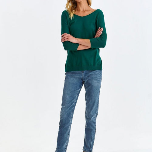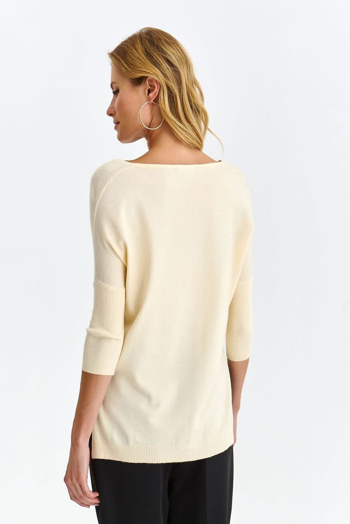 Comfortable to wear, this women's sweater has a classic straight cut with 3/4 length sleeves finished with delicate stitching. It has a slightly oval neckline with delicate piping around it and captivates with its simplicity and smoothness. It is made of pleasant to the touch and good quality knitwear, being appreciated for its versatility of use. It looks nice both...