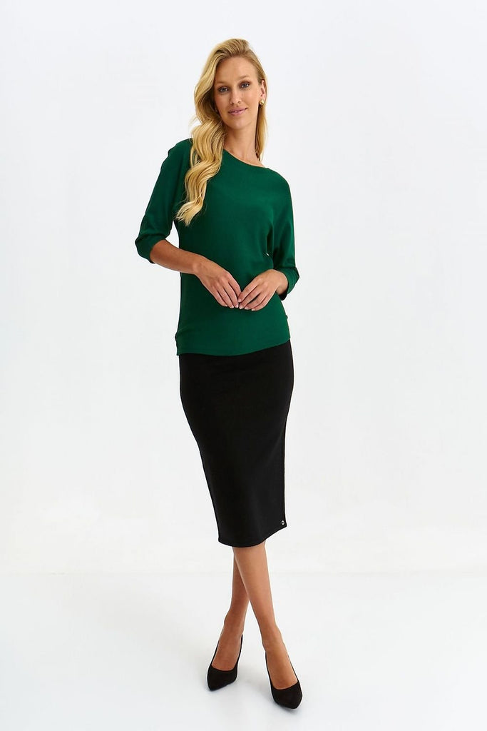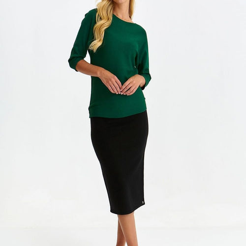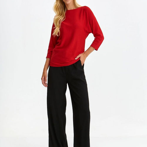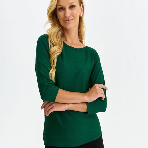 Captivating with comfort during use, the women's sweater has a loose cut with 3/4 length kimono sleeves finished with delicate stitching. It has a slightly oval neckline with delicate piping around it and is made of a pleasant-to-touch knitwear valued for the softness and smoothness it offers. It can be successfully used both as an element of a woman's styling...