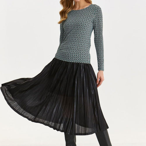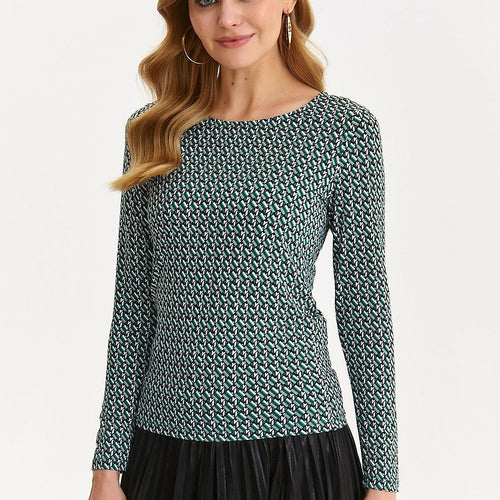 This women's blouse is a combination of elegance and comfort. The long sleeve makes it ideal for colder days, while the round neckline adds subtle charm. The fitted cut emphasizes the feminine silhouette, creating an attractive style. The material with an interesting pattern adds originality to the blouse, giving the whole styling a distinctive character. This is an excellent choice...