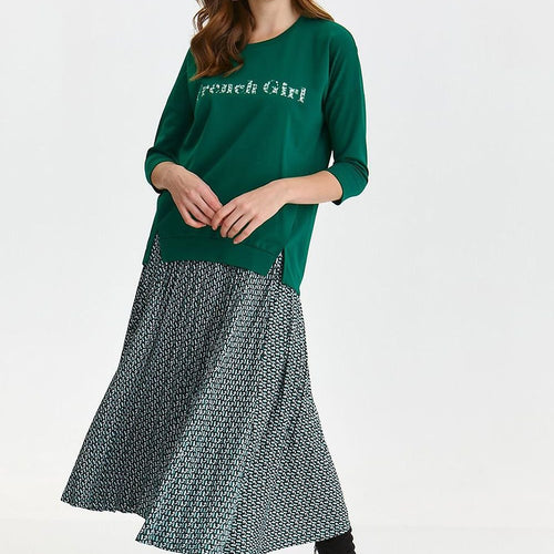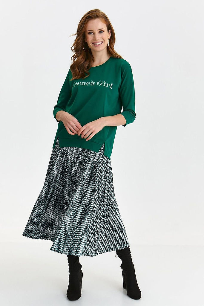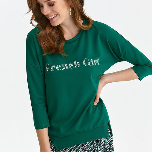 Women's blouse with 3/4 sleeves is an excellent choice for women who appreciate comfort and style. Its looser cut provides freedom of movement, and the round neckline adds a girly charm. In addition, the sweatshirt is decorated with slits on the sides, which give it lightness and originality. On the front of the sweatshirt there is an inscription, which adds...