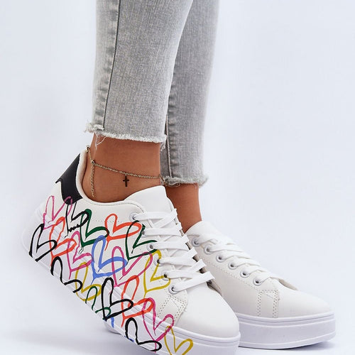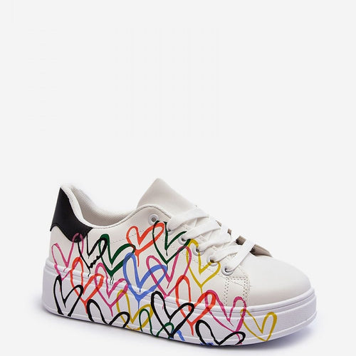 Women's sneakers made of eco leather. Set on a platform. This model is extremely comfortable, thanks to the fabric-foam insole. Rounded nose pads. Upper decorated with hearts. Great for many sporty stylizations. You absolutely must have them! fabric artificial leather Footbed ~pianka Upper height 7 cm Platform height 3.5 cm Size Insole lenght 36 23 cm 37 23.5 cm 38...