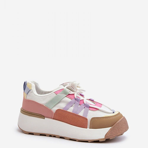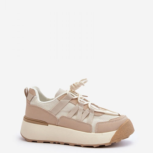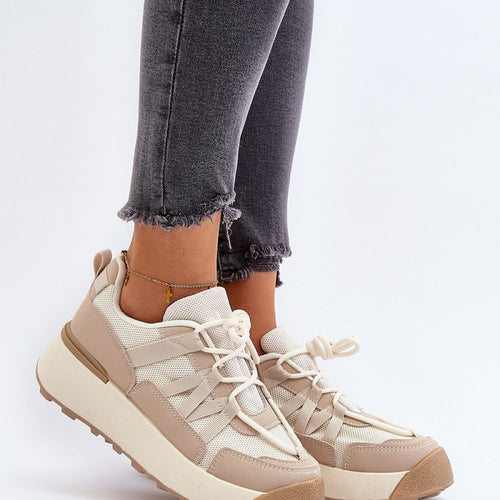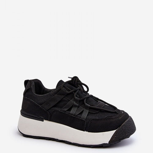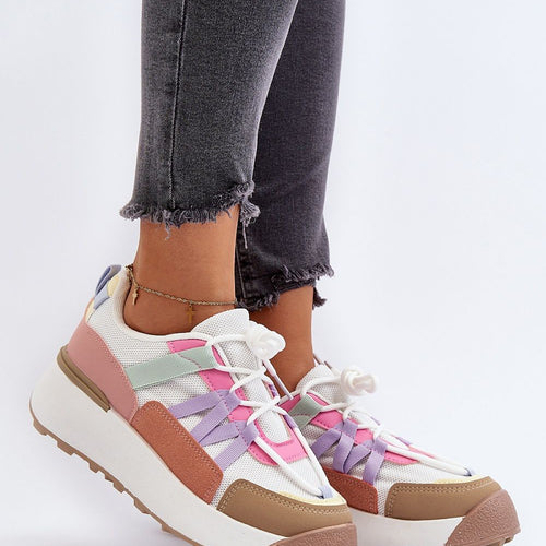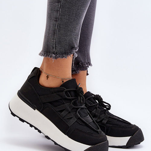 Women's sports shoes made of a combination of textile and eco leather. Set on a massive platform that will gently elevate your silhouette. Lace-up model. The foam insole will ensure comfort during use. You absolutely must have them! fabric fabric Footbed ~pianka Upper height 6.5 cm Platform height 4 cm Size Insole lenght 36 23 cm 37 23.5 cm 38...
