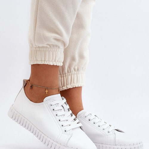 Classic women's sneakers made of eco leather. Set on a rubber sole. Rounded toe caps. Classically laced model. Soft, material insole will ensure comfort during use even all day long. This cut will perfectly match almost any styling with pants and shorts. They should definitely be in your spring-summer closet! fabric artificial leather Footbed fabric Upper height 6 cm Platform...