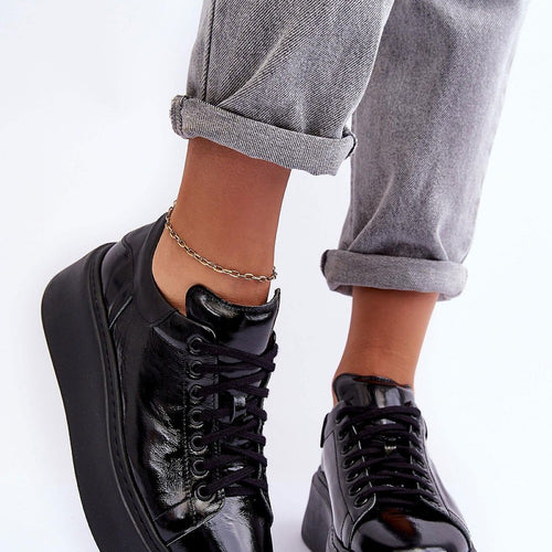 Sports shoes made of high quality natural leather. Set on a massive platform. Classically laced model. Soft leather insole guarantees comfort throughout the day. You should definitely have this model in your closet! fabric natural leather Footbed natural leather Upper height 7 cm Platform height 4 cm Size Insole lenght 36 22.5 cm 37 23.5 cm 38 24 cm 39...
