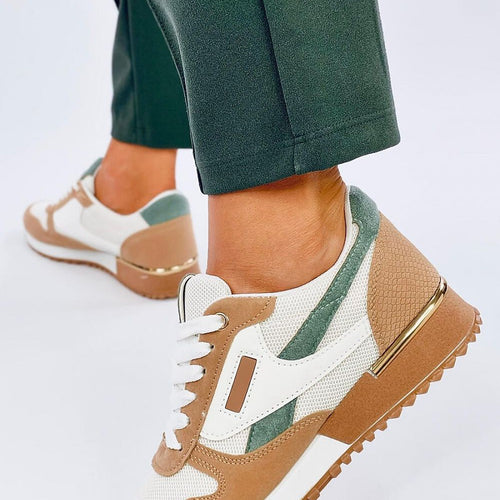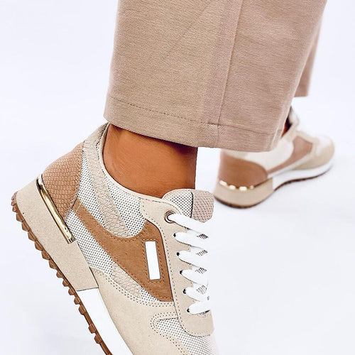 Comfortable women's sports shoes - lace-up sneakers. They have a classic, sleek cut and original color combinations that are sure to attract the eyes.... Not only do they look great, they are also mega comfortable - see for yourself! The interior of the shoes is lined with fabric. Outer material - ecological leather + ecological suede + fabric. fabric suede...