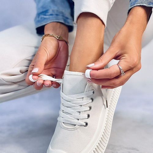 Women's lace-up sneakers on a platform. They have a timeless cut on the most fashionable chunky 4 cm high sole. They are an absolute must have! Not only do they look great, they are also mega comfortable : ) The interior of the shoes is lined with fabric. Outer material - fabric. fabric fabric Footbed fabric Sole height 4 cm...