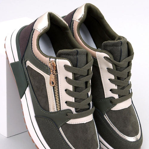 Women's lace-up sports shoes - sneakers. With a good dose of glamour (metallic and gold accessories) and a classic cut, these shoes will work well in both sporty and more casual outfits.... Give them a chance to conquer your closet : ) The interior of the shoes is lined with fabric. External material ? ecological leather + ecological suede. fabric...